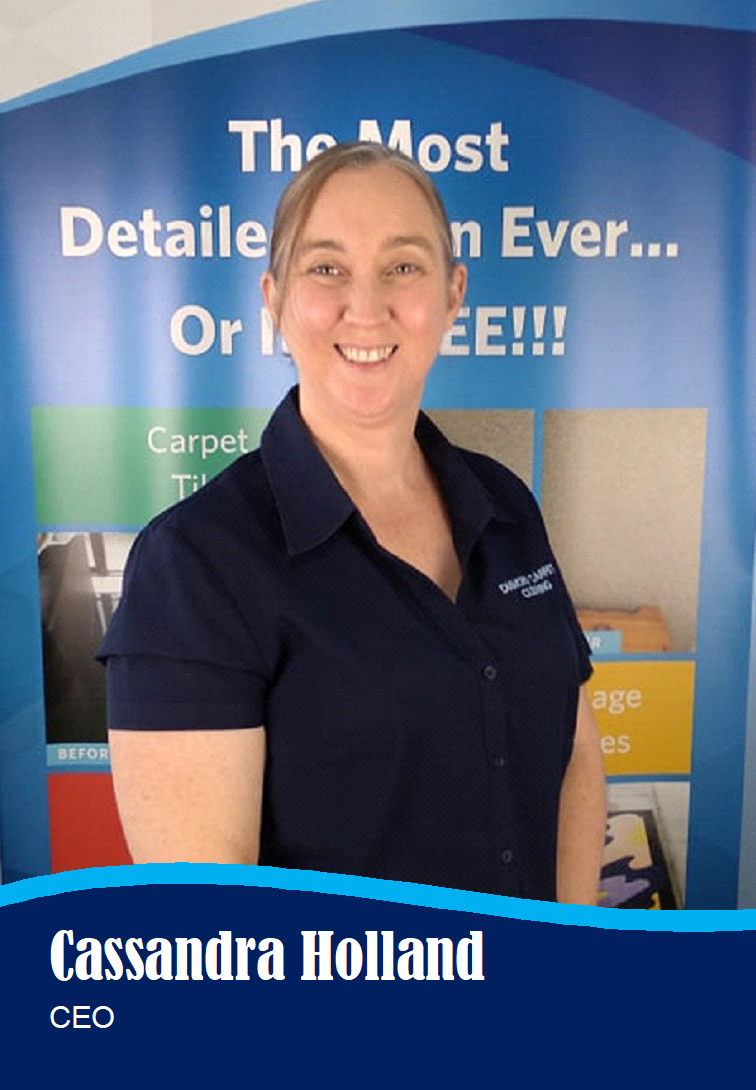Cassandra is the CEO of Diamond Carpet Cleaning and has 15 years of experience in the cleaning industry. Cassandra’s main roles are administration, finance, marketing & operations management, but she can be seen on-site assisting the technicians from time to time. Cassandra is certified through the IICRC for carpet cleaning, health & safety, basic stain removal & upholstery & fabric cleaning. She has a passion for delivering exceptional customer service.